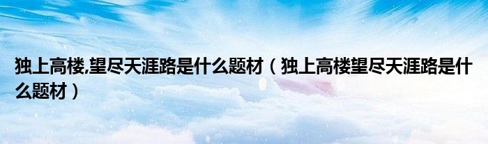 关于独上高楼,望尽天涯路是什么题材,独上高楼望尽天涯路是什么题材这个很多人还不知道,今天菲菲来为大家解答以上的问题,现在让我们一起来看看吧!