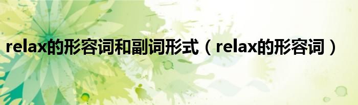 关于relax的形容词和副词形式,relax的形容词这个很多人还不知道,今天菲菲来为大家解答以上的问题,现在让我们一起来看看吧!