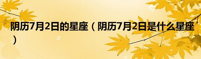 2、你出生那年农历7月2日所对应的阳历就是你的星座。