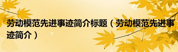 关于劳动模范先进事迹简介标题,劳动模范先进事迹简介这个很多人还不知道,今天菲菲来为大家解答以上的问题,现在让我们一起来看看吧!