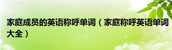 关于家庭成员的英语称呼单词,家庭称呼英语单词大全这个很多人还不知道,今天菲菲来为大家解答以上的问题,现在让我们一起来看看吧!