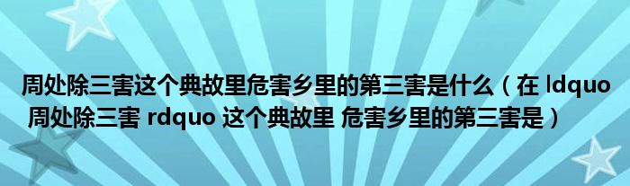 关于周处除三害这个典故里危害乡里的第三害是什么,在 ldquo 周处除三害 rdquo 这个典故里 危害乡里的第三害是这个很多人还不知道,今天菲菲来为大家解答以上的问题,现在让我们一起来看看吧!