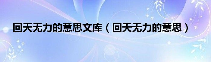 大家好,小晋来为大家解答以下问题,关于回天无力的意思文库,回天无力的意思很多人还不知道,今天让我们一起来看看吧!