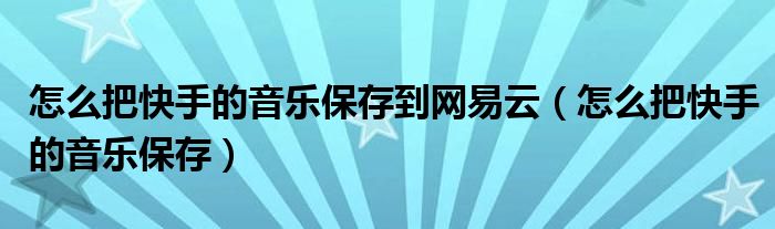 大家好,小晋来为大家解答以下问题,关于怎么把快手的音乐保存到网易云,怎么把快手的音乐保存很多人还不知道,今天让我们一起来看看吧!