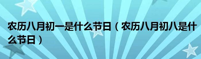 关于农历八月初一是什么节日,农历八月初八是什么节日这个很多人还不知道,今天菲菲来为大家解答以上的问题,现在让我们一起来看看吧!