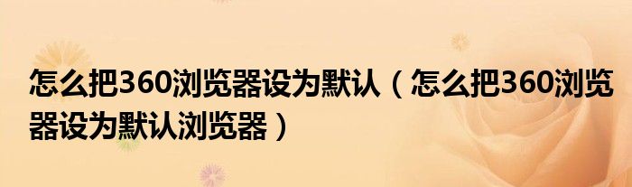 大家好,小飞来为大家解答以上问题,怎么把360浏览器设为默认,怎么把360浏览器设为默认浏览器很多人还不知道,现在让我们一起来看看吧!