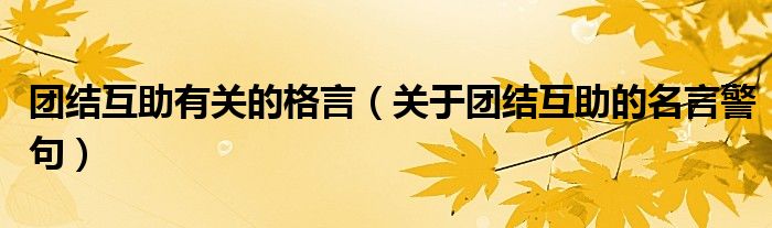 关于团结互助有关的格言,关于团结互助的名言警句这个很多人还不知道,今天菲菲来为大家解答以上的问题,现在让我们一起来看看吧!