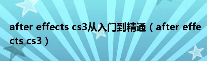 after effects cs3从入门到精通,after effects cs3这个很多人还不知道,小飞来为大家解答以上的问题。现在让我们一起来看看吧!