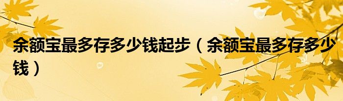 大家好,来宝来为大家解答以下问题,余额宝最多存多少钱起步,余额宝最多存多少钱很多人还不知道,今天让我们一起来看看吧!
