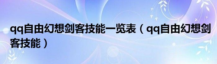 qq自由幻想剑客技能一览表,qq自由幻想剑客技能这个很多人还不知道,小飞来为大家解答以上的问题。现在让我们一起来看看吧!