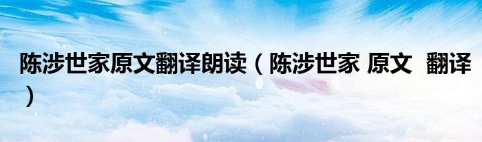 关于陈涉世家原文翻译朗读,陈涉世家 原文 翻译这个很多人还不知道,今天菲菲来为大家解答以上的问题,现在让我们一起来看看吧!