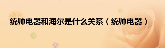 大家好,来宝来为大家解答以下问题,统帅电器和海尔是什么关系,统帅电器很多人还不知道,今天让我们一起来看看吧!