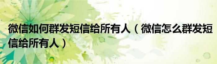 大家好,来宝来为大家解答以下问题,微信如何群发短信给所有人,微信怎么群发短信给所有人很多人还不知道,今天让我们一起来看看吧!