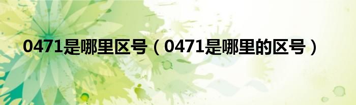 0471是哪里区号,0471是哪里的区号这个很多人还不知道,小飞来为大家解答以上的问题。现在让我们一起来看看吧!