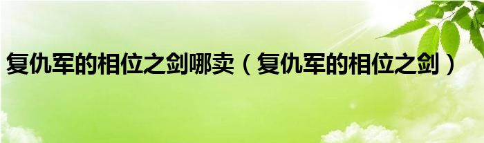 关于复仇军的相位之剑哪卖,复仇军的相位之剑这个很多人还不知道,今天菲菲来为大家解答以上的问题,现在让我们一起来看看吧!