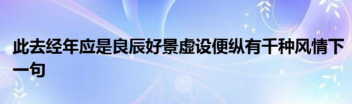 关于此去经年应是良辰好景虚设便纵有千种风情下一句这个很多人还不知道,今天菲菲来为大家解答以上的问题,现在让我们一起来看看吧!