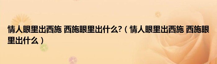 情人眼里出西施 西施眼里出什么?,情人眼里出西施 西施眼里出什么这个很多人还不知道,小飞来为大家解答以上的问题。现在让我们一起来看看吧!