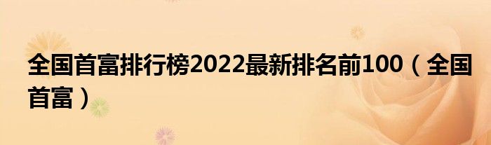 关于全国首富排行榜2022最新排名前100,全国首富这个很多人还不知道,今天菲菲来为大家解答以上的问题,现在让我们一起来看看吧!