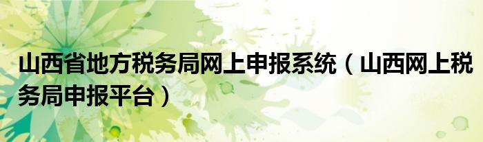 关于山西省地方税务局网上申报系统,山西网上税务局申报平台这个很多人还不知道,今天菲菲来为大家解答以上的问题,现在让我们一起来看看吧!