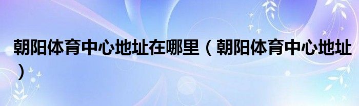 关于朝阳体育中心地址在哪里,朝阳体育中心地址这个很多人还不知道,今天菲菲来为大家解答以上的问题,现在让我们一起来看看吧!