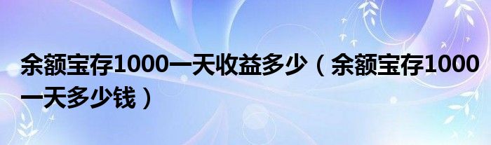 大家好,小飞来为大家解答以上的问题。余额宝存1000一天收益多少,余额宝存1000一天多少钱这个很多人还不知道,现在让我们一起来看看吧!