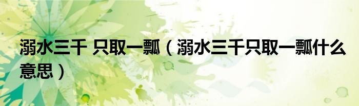 关于溺水三千 只取一瓢,溺水三千只取一瓢什么意思这个很多人还不知道,今天菲菲来为大家解答以上的问题,现在让我们一起来看看吧!