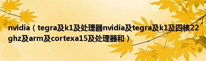 大家好,小常来为大家解答以上问题。nvidia,tegra及k1及处理器nvidia及tegra及k1及四核22ghz及arm及cortexa15及处理器和很多人还不知道,现在让我们一起来看看吧!