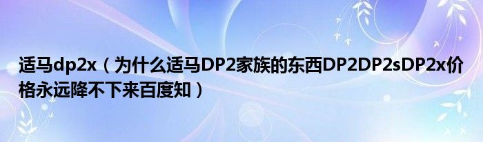 1,为什么适马DP2家族的东西DP2DP2sDP2x价格永远降不下来百度知 :因为他的配置就是好,所以就不会降低。就好像单反永远都不会降到几百一样。DP2的感光元件其实比APSC已经小不了多少了,定焦镜头画质也没得说。加上与单反相比,它更轻便便携,所以它确实是值这个价。如果你非要说还有其他原因就是没有更多厂商能在低端价位上推出其他产品,in China,就是山寨不能!你见过山寨单反机?由于技术垄断和切实存在的生产成本,加之高端相机仪器自身精密性,制造成本和耗费工时都决定没人能把成本降下来,也不会有人愿意造出来在低价位推出!