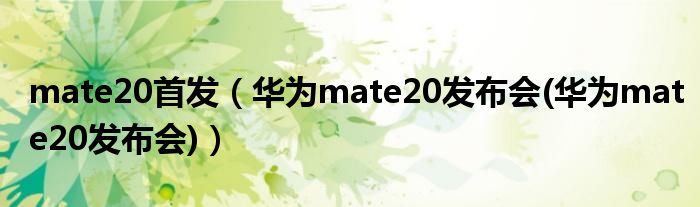 大家好,小常来为大家解答以上问题。mate20首发,华为mate20发布会(华为mate20发布会)很多人还不知道,现在让我们一起来看看吧!