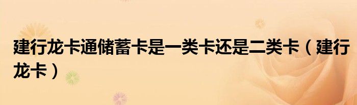 关于建行龙卡通储蓄卡是一类卡还是二类卡,建行龙卡这个很多人还不知道,今天菲菲来为大家解答以上的问题,现在让我们一起来看看吧!