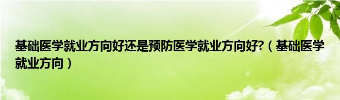 基础医学就业方向好还是预防医学就业方向好?(基础医学就业方向)