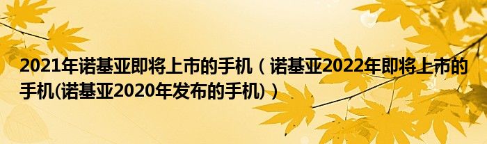 大家好,小常来为大家解答以上问题。2021年诺基亚即将上市的手机,诺基亚2022年即将上市的手机(诺基亚2020年发布的手机)很多人还不知道,现在让我们一起来看看吧!