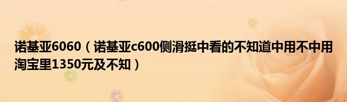 大家好,小常来为大家解答以上问题。诺基亚6060,诺基亚c600侧滑挺中看的不知道中用不中用淘宝里1350元及不知很多人还不知道,现在让我们一起来看看吧!