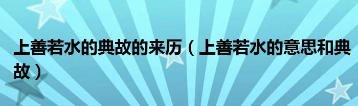 关于上善若水的典故的来历,上善若水的意思和典故这个很多人还不知道,今天菲菲来为大家解答以上的问题,现在让我们一起来看看吧!
