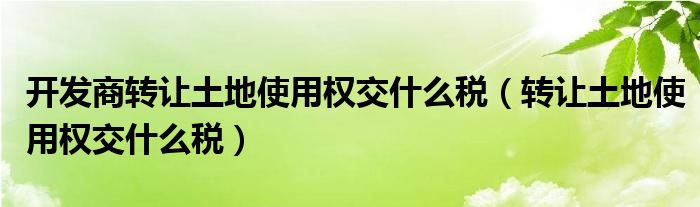 关于开发商转让土地使用权交什么税,转让土地使用权交什么税这个很多人还不知道,今天菲菲来为大家解答以上的问题,现在让我们一起来看看吧!