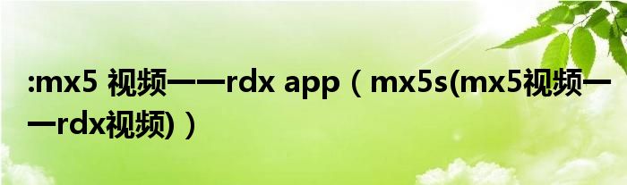 大家好,小常来为大家解答以上问题。:mx5 视频一一rdx app,mx5s(mx5视频一一rdx视频)很多人还不知道,现在让我们一起来看看吧!