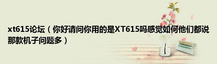 大家好,小常来为大家解答以上问题。xt615论坛,你好请问你用的是XT615吗感觉如何他们都说那款机子问题多很多人还不知道,现在让我们一起来看看吧!