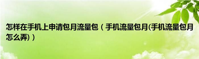 二.手机怎么流量包月: