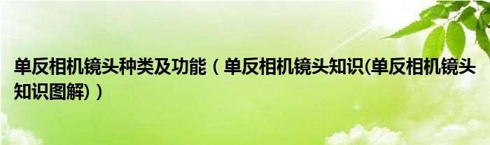 大家好,小常来为大家解答以上问题。单反相机镜头种类及功能,单反相机镜头知识(单反相机镜头知识图解)很多人还不知道,现在让我们一起来看看吧!