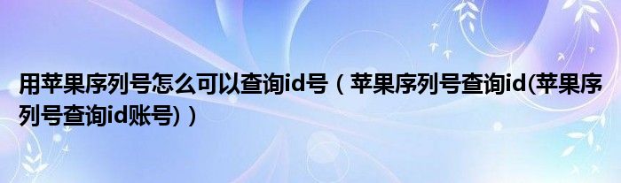 大家好,小常来为大家解答以上问题。用苹果序列号怎么可以查询id号,苹果序列号查询id(苹果序列号查询id账号)很多人还不知道,现在让我们一起来看看吧!