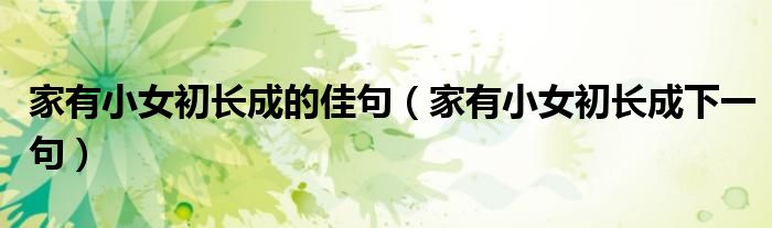 关于家有小女初长成的佳句,家有小女初长成下一句这个很多人还不知道,今天菲菲来为大家解答以上的问题,现在让我们一起来看看吧!