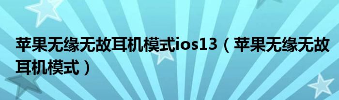 大家好,小晋来为大家解答以下问题,关于苹果无缘无故耳机模式ios13,苹果无缘无故耳机模式很多人还不知道,今天让我们一起来看看吧!