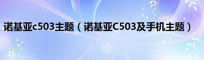 1,诺基亚C503 手机主题:建议你到www.zhutiwang.com直接下载主题,然后用USB进行安装到手机即可很多美女主题哦