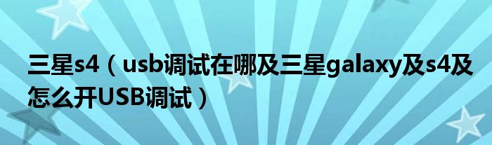 2,三星Galaxy S4怎么打开USB调试模式 : 三星s4的usb调试打开需要在设置-关于设备-版本信息这里连续点击,然后就会多出来开发者选项,然后再打开开发者选项,选项打开usb调试即可