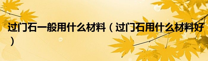 关于过门石一般用什么材料,过门石用什么材料好这个很多人还不知道,今天菲菲来为大家解答以上的问题,现在让我们一起来看看吧!