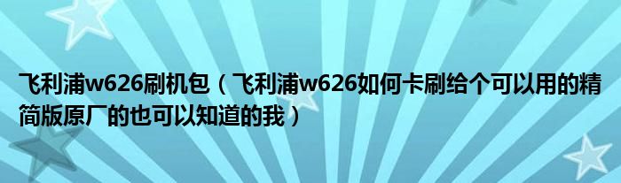 大家好,小常来为大家解答以上问题。飞利浦w626刷机包,飞利浦w626如何卡刷给个可以用的精简版原厂的也可以知道的我很多人还不知道,现在让我们一起来看看吧!