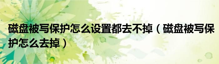 大家好,小飞来为大家解答以上问题,磁盘被写保护怎么设置都去不掉,磁盘被写保护怎么去掉很多人还不知道,现在让我们一起来看看吧!