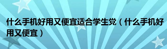 大家好,小飞来为大家解答以上问题,什么手机好用又便宜适合学生党,什么手机好用又便宜很多人还不知道,现在让我们一起来看看吧!