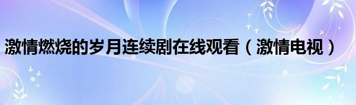 激情燃烧的岁月连续剧在线观看,激情电视这个很多人还不知道,小飞来为大家解答以上的问题。现在让我们一起来看看吧!