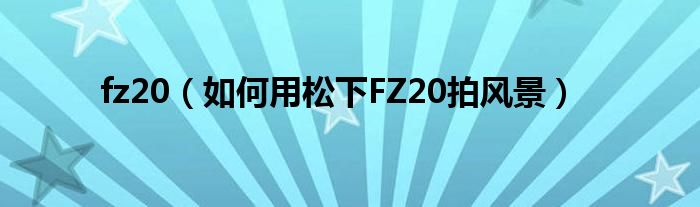 大家好,小常来为大家解答以上问题。fz20,如何用松下FZ20拍风景很多人还不知道,现在让我们一起来看看吧!